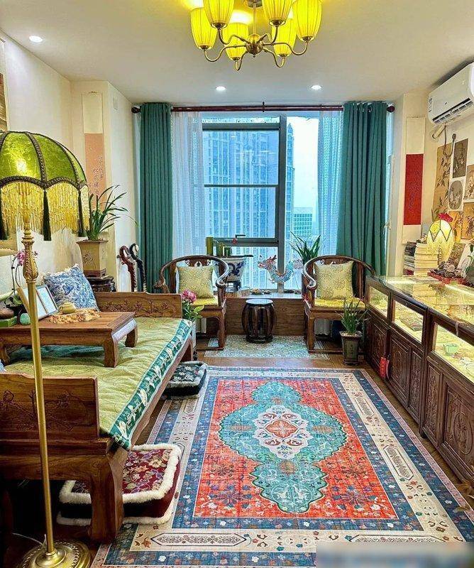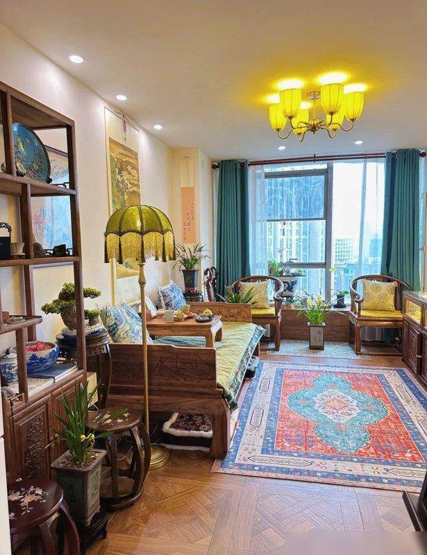 现在国潮风这么火,从汉服到故宫文创,大家爱的不是“复古”,是“有根的美”。这姑娘的家就是“国潮家居”的最好例子——不是照搬宫廷的雕龙画凤,是提取“繁而不乱、讲究细节”的审美内核,把它变成自己的生活方式。你说,这样的家能不红吗?能不让人想“我也试试”吗?
